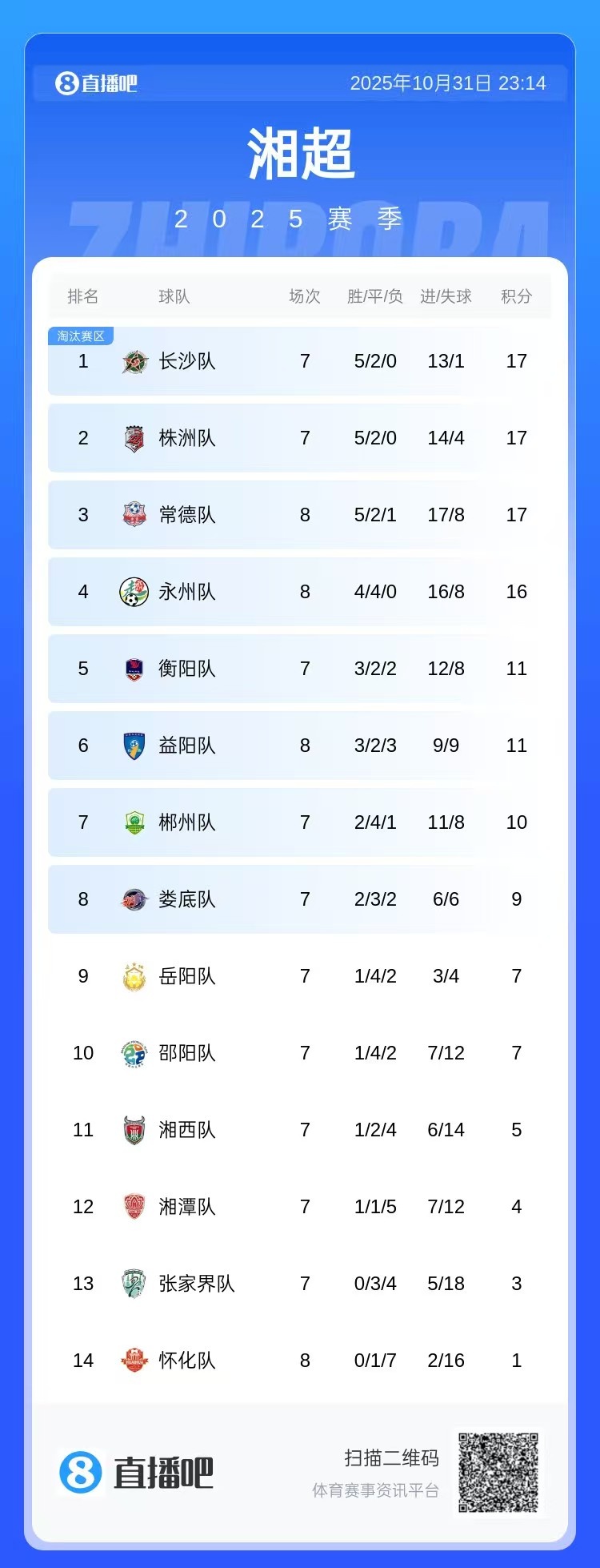 10月31日讯 10月31日,湘超第8轮先赛两场,常德队1-0击败怀化队,常德队先赛情况下积17分,暂时追平长沙队和株洲队,足球免费直播高清直播因净胜球劣势,暂列第三位;永州队3-2击败益阳队,永州队追赶 榜首1分,暂时排名第四。
