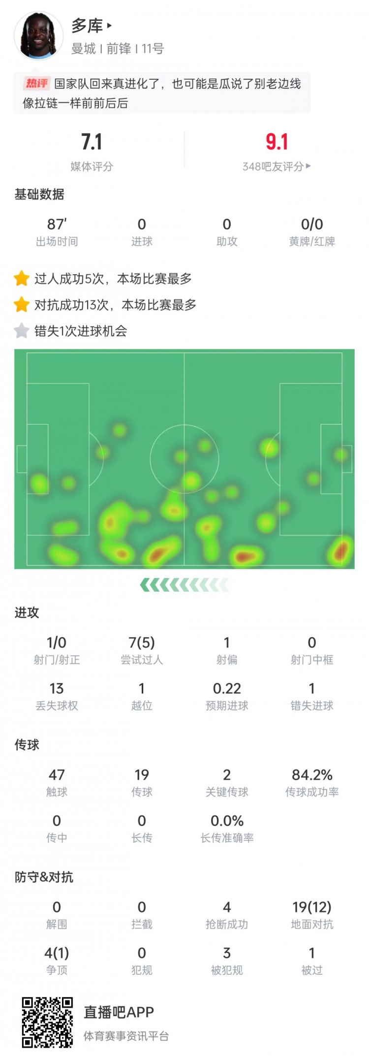 此役多库为曼城杆位出战,成功过人5次、对峙 成功13次,欧洲杯直播均为全场最多。