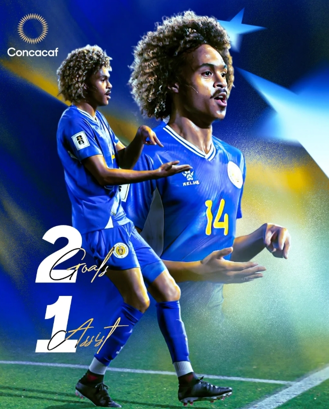 此役,刚刚归化库拉索的华裔中场球员陈达毅大放异彩,贡献2球1助的完美表现。