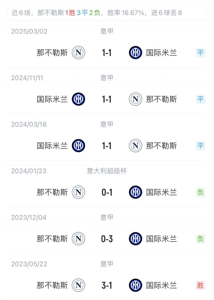 他们也得以结束了面对国米的各项赛事连续5场不胜(2负3平,期间打进3球、丢7球)。