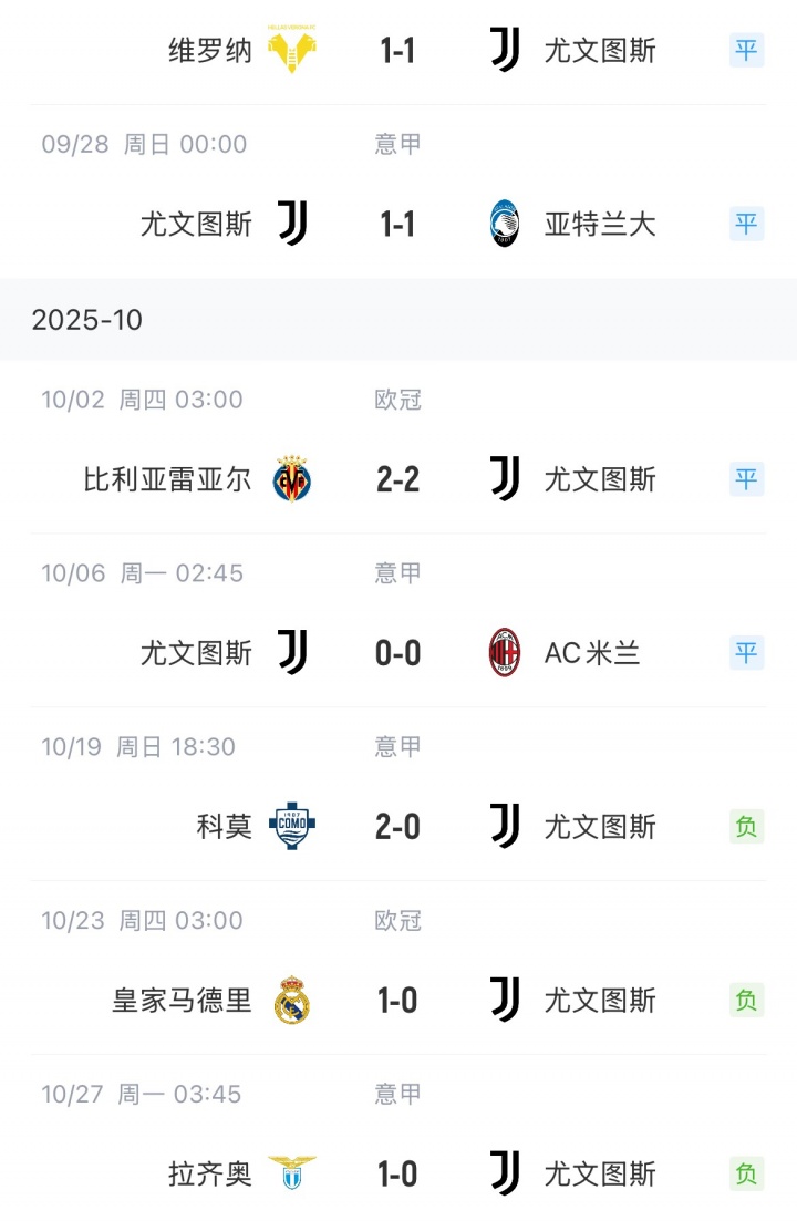 尤文各赛事已8场不胜,足球直播吧连续四场未能得分 。