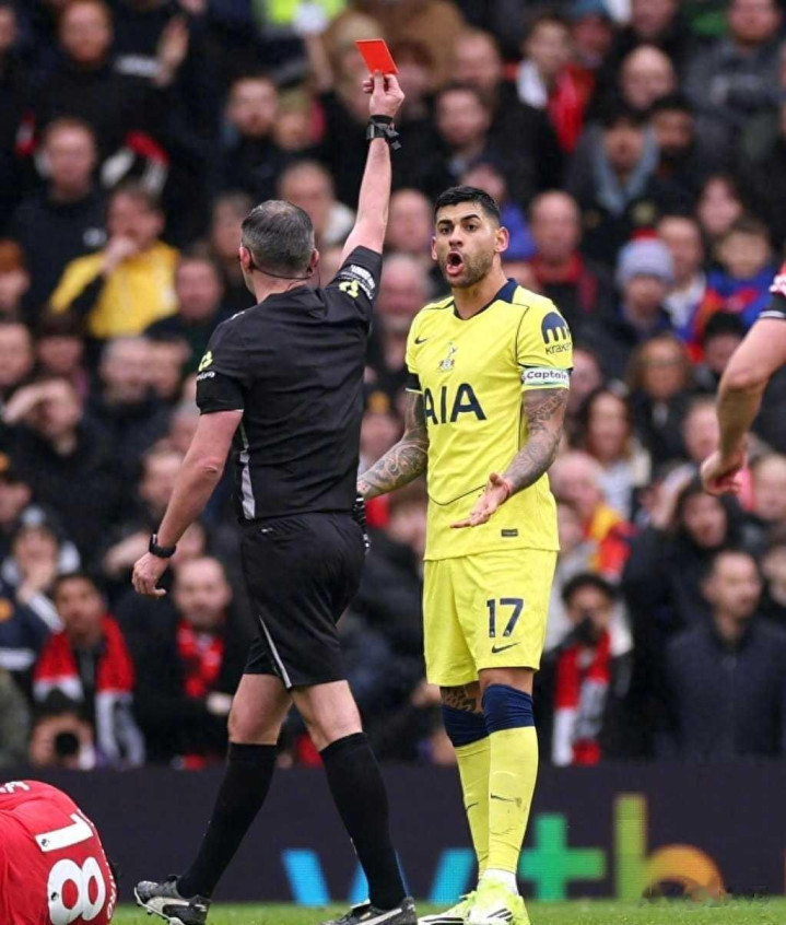 热刺领队 罗梅罗在后场处理球时出现错误 ,面对卡塞米罗的上抢,罗梅罗在拼抢中一脚踩在了卡塞米罗的左脚脚踝上。主裁判 迈克尔·奥利弗就在事发地点附近,在VAR确认后,毫不犹豫地直接出示驱逐 将罗梅罗罚下。这一判决 彻底改变了赛事 走势,热刺被迫在剩余60多分钟里以10人应战。