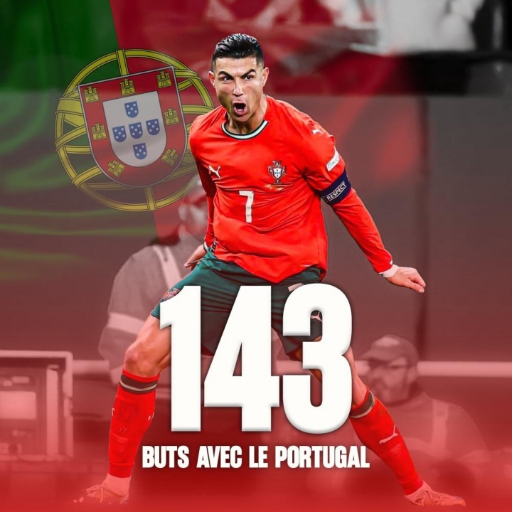 C罗国家队生涯225场打进143球,继续领跑国家队历史射手榜,领跑 第二梅西29球!