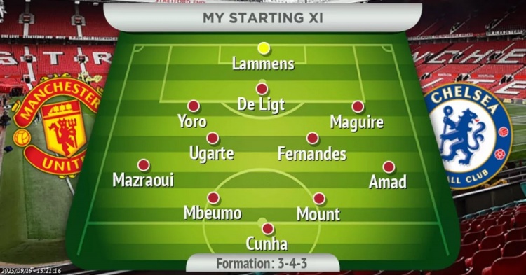 9月20日讯 9月21日0点30分,曼联将坐镇主场作战 对阵切尔西。赛前,《曼彻斯特晚报》预测本场赛事 曼联杆位名单,免费足球直播app下载姆伯莫、库尼亚、芒特为前场三叉戟,阵形 343。